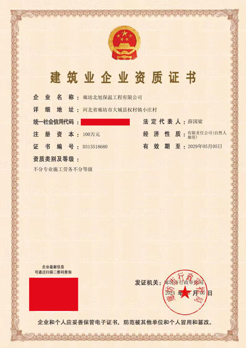 廊坊北旭保溫工程有限公司是一家以節能工程施工、保溫工程、裝修裝飾工程施工為主的公司,公司成立以來,確立了“以市場為導向、以質量求生存、以信譽求發展”的方針,我們本著對客戶誠實守信的態度,努力為我國節能事業作出貢獻。